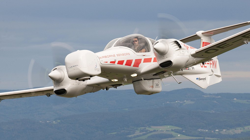 - Лазерное сканирующее устройство RIEGL размещено под фюзеляжем в обтекателе. Аппаратура соединяет первичные данные от сканирующего устройства с навигационной информацией, полученной от GPS и навигационной системы самого самолета, для получения максимальной точности.